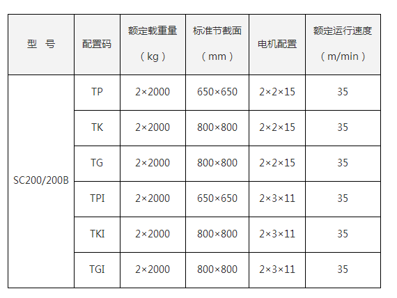 江漢 SC200/200B 普通升降機 2t