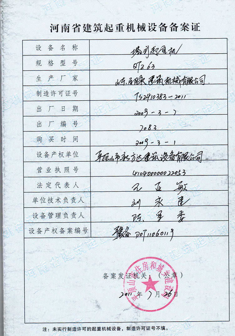 ? ? ? ?平頂山市新方達(dá)建筑設(shè)備有限公司主要業(yè)務(wù)包括:各種型號塔吊、施工升降機(jī)、物料提升機(jī)、小型建筑機(jī)械的銷售、租賃、安拆、養(yǎng)護(hù)維修、土建工程施工、物流運(yùn)輸、園林花卉、企業(yè)咨詢、企業(yè)策劃、廣告制作發(fā)布、新型全鋼液壓成型標(biāo)準(zhǔn)扣件(本公司專利產(chǎn)品)的設(shè)計、研發(fā)、生產(chǎn)、銷售,各種土建工程的勞務(wù)承包、勞務(wù)輸出、農(nóng)牧業(yè)開發(fā)、生態(tài)園開發(fā)建設(shè)等業(yè)務(wù)。
