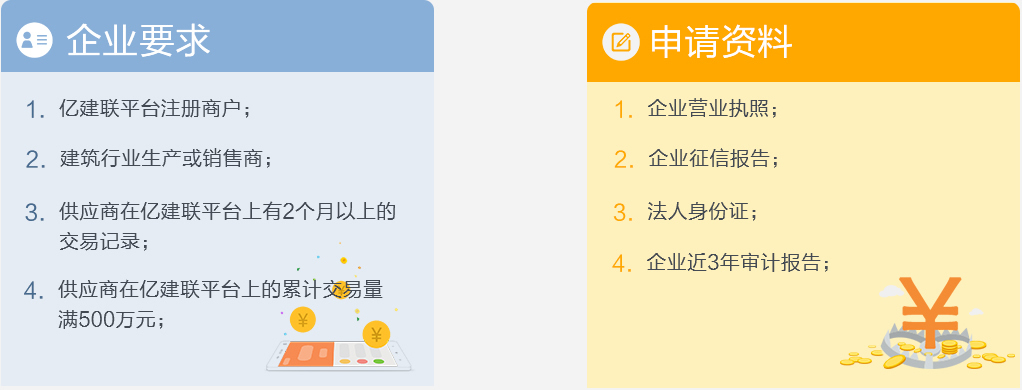 銀行通是注冊供應商使用億建聯的銀行授信,通過億建聯的貸款擔保獲得銀行流動資金貸款的一項供應鏈金融服務。銀行通服務可以幫助億建聯的注冊供應商獲得穩定的融資渠道,并能有效降低企業的融資成本,為供應商的貿易提供強有力的資金支持