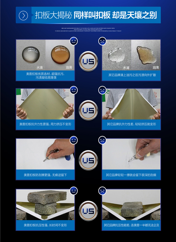 鋁扣板是一種特殊的材質,質地輕便耐用,被廣泛運用于家裝吊頂中,具有多種優良特性,適用于廚房和衛生間中,既能達到很好的裝飾效果,又具備多種功效,因此深受消費者的歡迎,這就是鋁扣板吊頂的由來。
