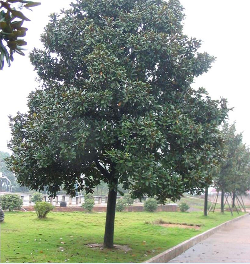 廣玉蘭樹姿優雅,四季常青,病蟲害少,因而是優良的行道樹種,不僅可以在夏日為行人提供必要的庇蔭,還能很好地美化街景。但栽種時應盡量選擇較大一些的苗木,干徑3~6 cm,高度2. 8 m 左右較為適宜。過小,則易遭破壞;過大,則移栽成活率低。道路綠化時,廣玉蘭與色葉樹種配植,能產生顯著的色相對比,從而使街景的色彩更顯鮮艷和豐富。在綠化帶應用中,將廣玉蘭與紅葉李間植,并配以桂花、海桐球等,不僅在空間上有層次感,而且色相上又有很大的變化,打破了序列空間的單調,產生一種和諧的韻律感,取得了很好的效果 。