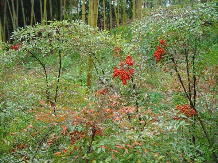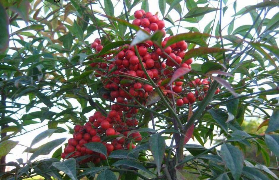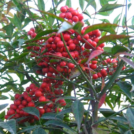 南天竹,別名:南天竺,紅杷子,天燭子,紅枸子,鉆石黃,天竹,蘭竹;拉丁文名:Nandina domestica.屬毛茛目、小檗科下植物,是我國南方常見的木本花卉種類。由于其植株優美,果實鮮艷,對環境的適應性強,常常出現在園林應用中。常見栽培變種有:玉果南天竹,漿果成熟時為白色;綿絲南天竹,葉色細如絲;紫果南天竹,果實成熟時呈淡紫色;圓葉南天竹,葉圓形,且有光澤。因其形態優越清雅,也常被用以制作盆景或盆栽來裝飾窗臺、門廳、會場等。