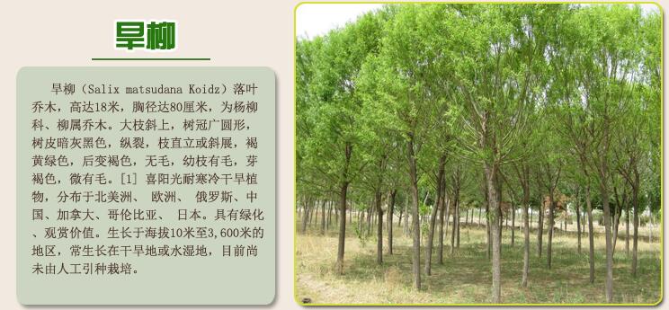 ? ? ? ?旱柳枝條柔軟,樹冠豐滿,是我國北方常用的 庭蔭樹、行道樹。常栽培在河湖岸邊或孤植于草坪,對植于建筑兩旁。亦用作公路樹、防護林及沙荒造林,農(nóng)村“四旁”綠化等。是早春密源樹種。防護林及綠化樹種,亦可作用材樹種。樹形美,易繁殖,深為人們喜愛。其柔軟嫩綠的枝條、豐滿的樹冠及稍加修剪的樹姿,更加美觀。適合于庭前、道旁、河堤、溪畔、草坪栽植。 在北方園林,柳屬的一些綠化樹種是落葉樹種中綠期最長的一種。但由于種子成熟后柳絮飄揚,故在工廠、街道路旁等處,最好栽植雄株。持條、插干極易成活。亦可播種繁殖。綠化宜用雄株。